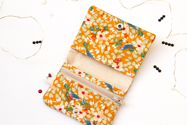 Nuestros monederos son únicos y el estampado puede variar según el corte de la tela aunque el pajarillo siempre será el protagonista principal, a la derecha o a la izquierda del botón