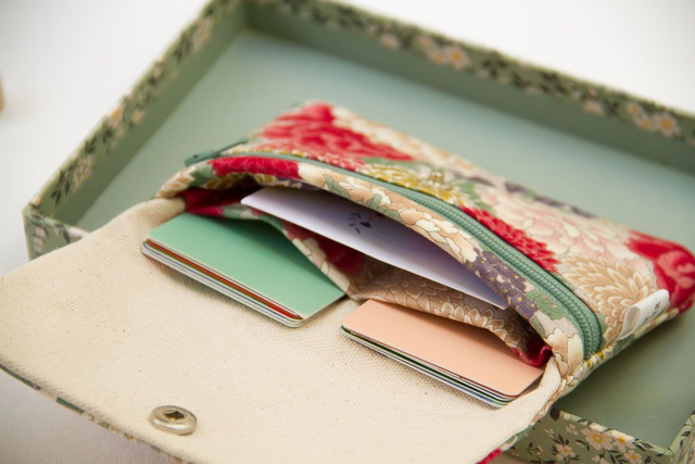 Este estampado tiene unos toques dorados muy bonitos, el frente del monedero puede variar según el corte de la tela pero siempre se ven las preciosas flores!