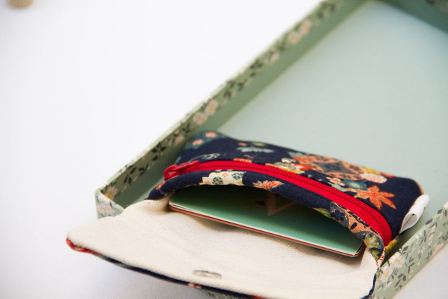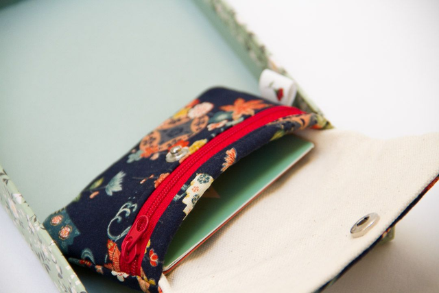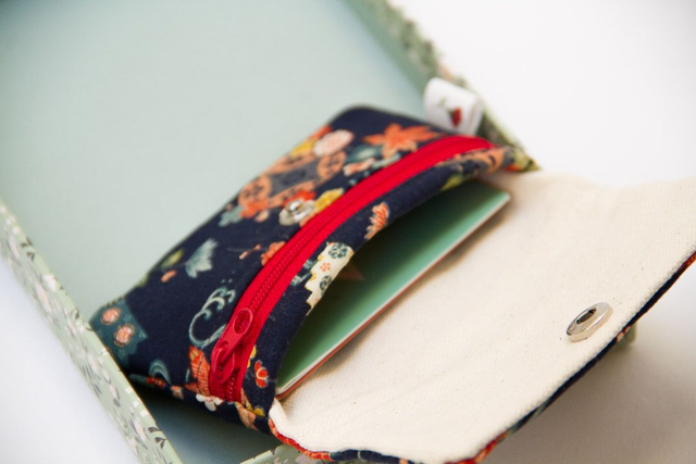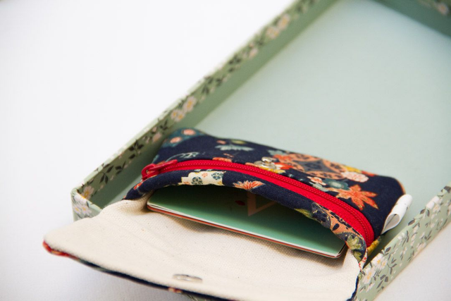· Entre las telas, un tejido ligeramente rígido que lo hace ideal para tus tarjetas y a la vez compacto